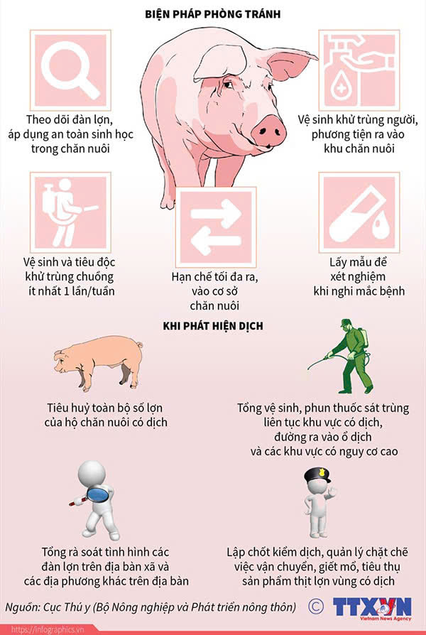 - Không tái đàn trong vùng dịch, không vận chuyển lợn/thịt lợn ra khỏi vùng dịch.